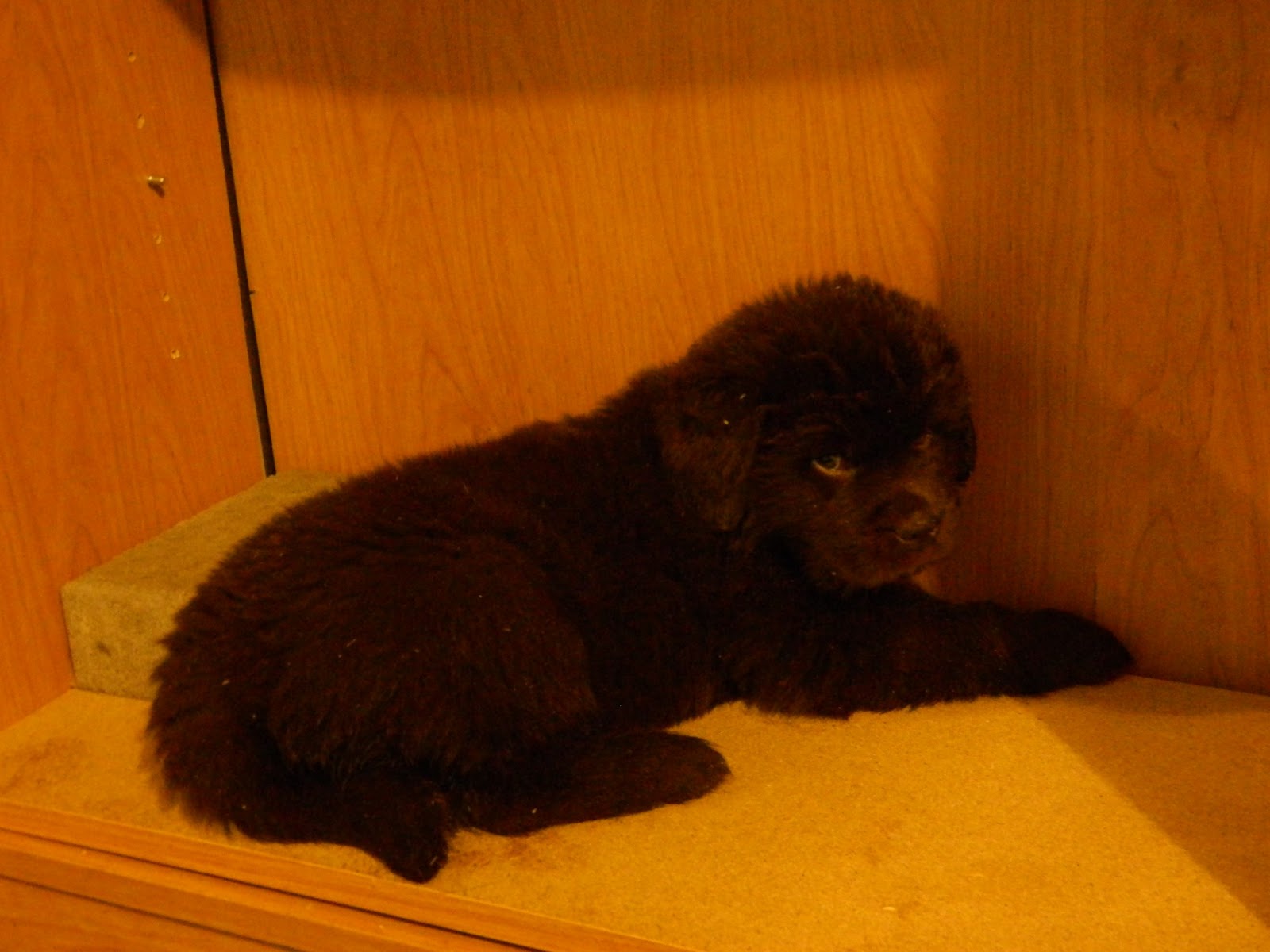 We are learning that baby Newfs have about the same energy as their parents. Hyper for a while, and then back to sleep. |